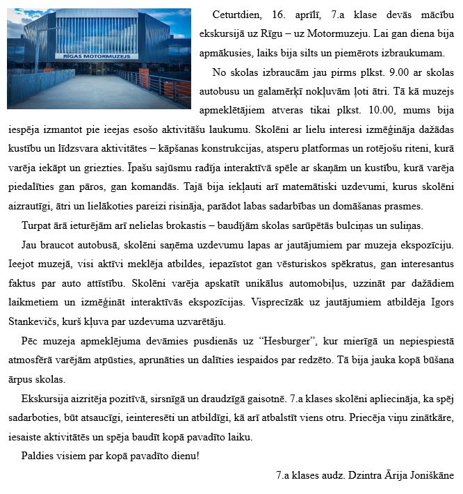 7.a klases ekskursija uz Rīgas Motormuzeju