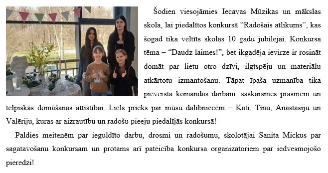 Noskaidroti konkursa “Sniegpulkstenīte” 1.kārtas laureāti