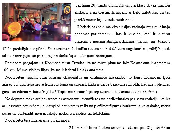 STEM nodarbība “ Glābšanas misija. Zeme kustībā ” Cēsu Kosmosa izziņas centrā