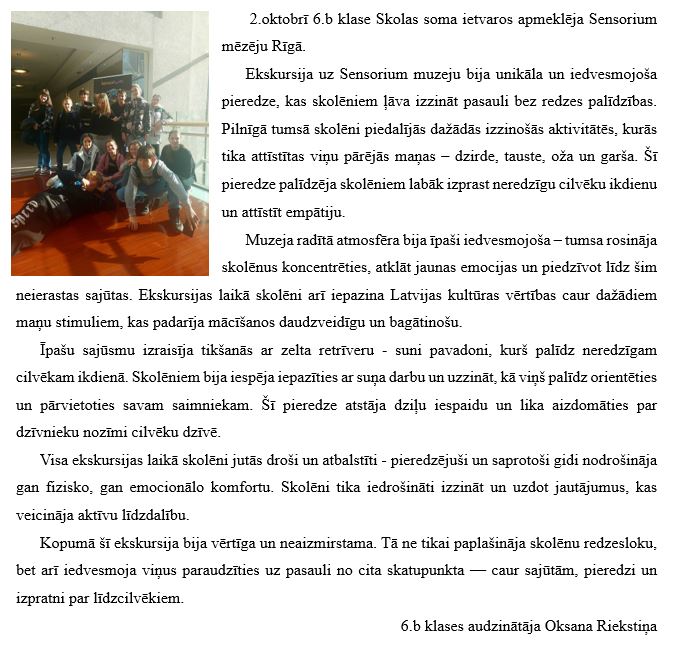 6.b klases ekskursija Sensorium muzejā “Izglītība caur pieredzi”