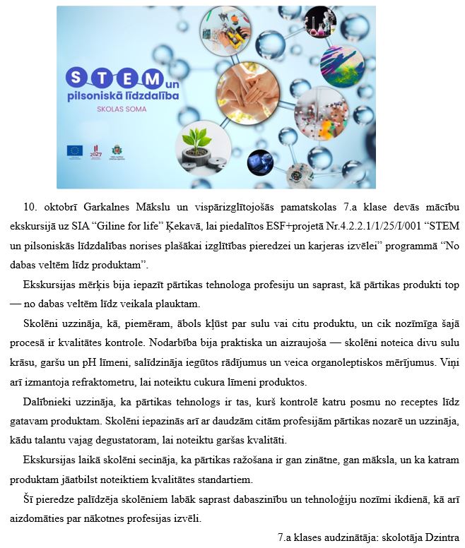 7.a klase karjeras nedēļā – iepazīst pārtikas tehnologa profesiju Ķekavā