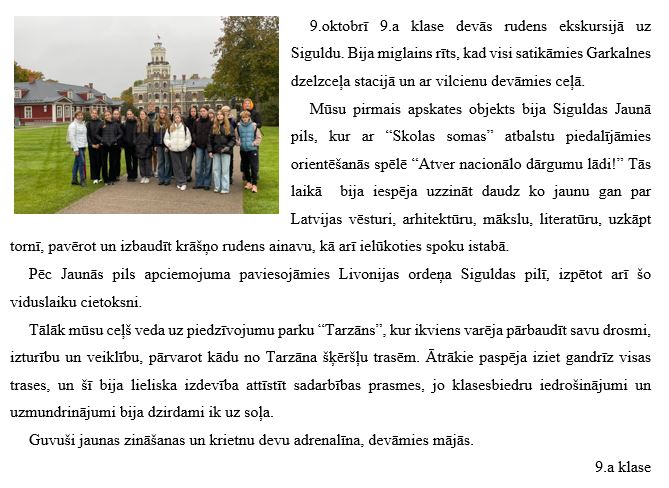 9.a klases ekskursija uz Siguldu