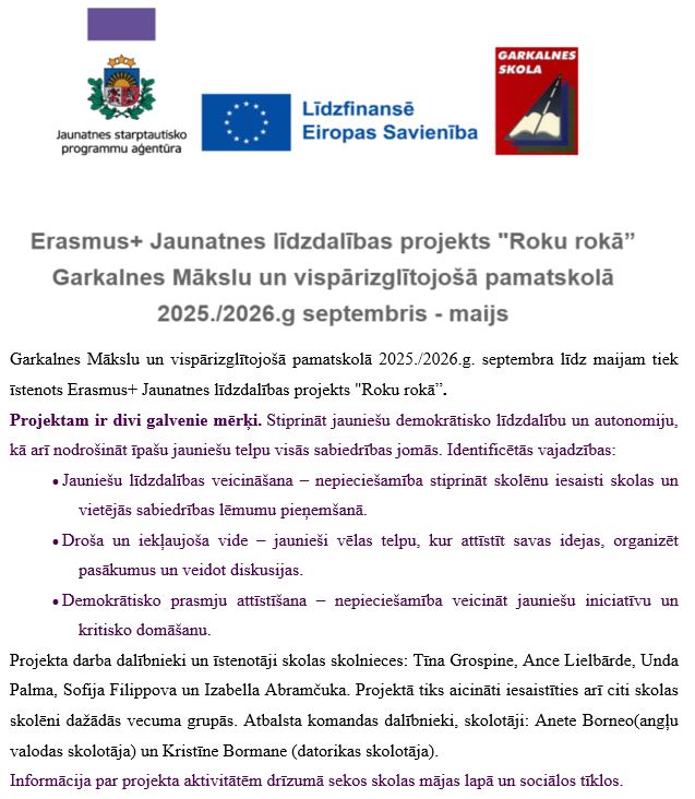Erasmus+ Jaunatnes līdzdalības projekts "Roku rokā”