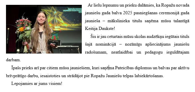 ROPAŽU NOVADA JAUNIEŠU GADA BALVA 2025