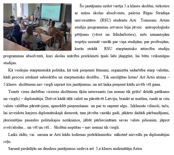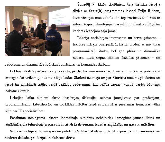 Start(it) lektores Evijas Ribenas viesošanās 9.klašu auditorijā – Iepazīšanās ar IT profesiju pasauli