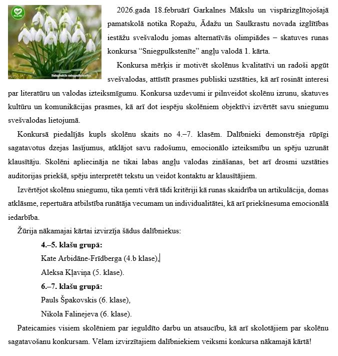Noskaidroti konkursa “Sniegpulkstenīte” 1.kārtas laureāti