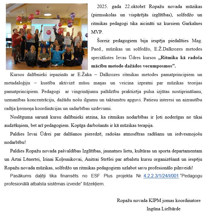Ropažu novada pedagogu profesionālās pilnveides kursi