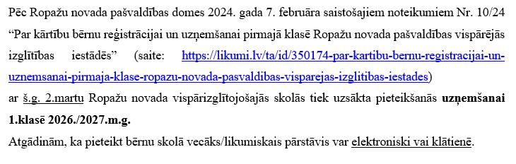 Pirmklasnieku uzņemšana