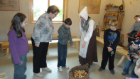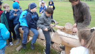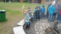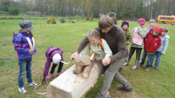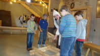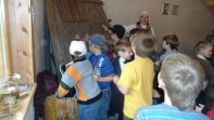 Iebraucot namdara darbnīcā, skolēni atdzīvojās, jo mūs laipni sagaidīja pati saimniece ar saimnieku. Saimniece uzreiz izrādīja savu viesmīlību un palūdza iziet caur goda vārtiem, jo mēs bijām gaidīti viesi. Pēc īsas iepazīšanās mūs ieaicināja saimnieka mājā, kurā mums par godu bija iekurināta krāsniņa. Saimnieka mājā mūs iepazīstināja ar dažādiem koku veidiem, uzdeva āķīgus jautājumus, pastāstīja, kādas mēbeles taisa no katra konkrētā koka. Mēs vēl mēģinājām uzcelt māju, sisties ar koka olām kā Lieldienās un paglaudījām niedru jumtu. Tas atgādināja, mazu pūkainu kaķēnu ar asiem nagiem.