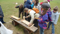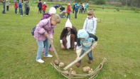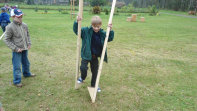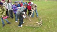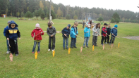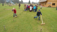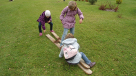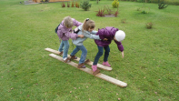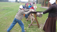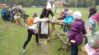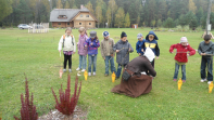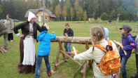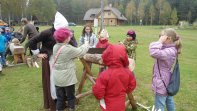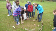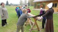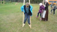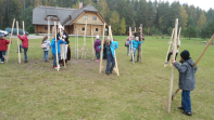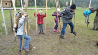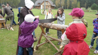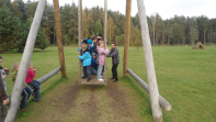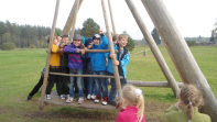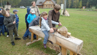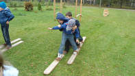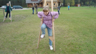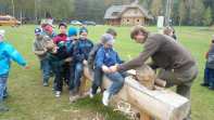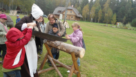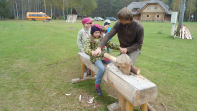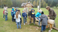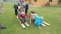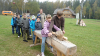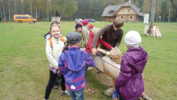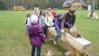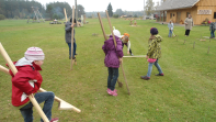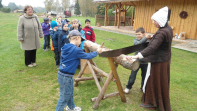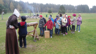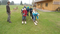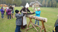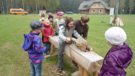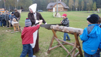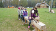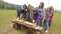 Pēc saimnieku mājas apmeklējuma mēs izgājām ārā, kur varējām zāģēt malku un slīmestot, citiem vārdiem sakot, noraut mizu kokam ar speciālu instrumentu. Vēl mēs cēlām Rīgu, mēģinājām iedzīt koka naglas speciāli ierīkotajā dēlītī. Pēc smagas un nogurdinošas Rīgas celšanas mēģinājām zvejot zivis, kas bija ļoti izsmalcināts un nemaz ne viegls uzdevums. Kad mēs bijām kārtīgi izzvejojuši visas saimnieku dīķa zivis, gājām „dzīt cūkas ganībās”. Pēc kārtīga darba vajag arī izklaidēties - paslēpot rudens laikā pa zāli ar slēpēm, dzīt koka motociklu caur dažādiem šķēršļiem un, protams, pastaigāt uz koka kājām.
