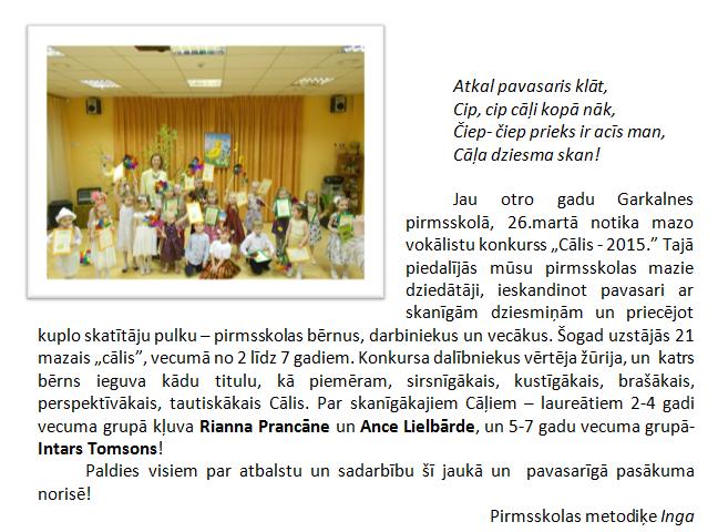 Garkalnes pirmsskolas „Cālis- 2015”