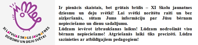 Informācija vecākiem par XI Skolu jaunatnes dziesmu un deju svētkiem