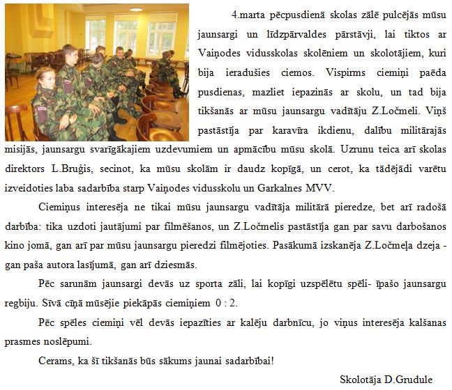 Vaiņodes vidusskolas jaunsargu viesošanās Garkalnē