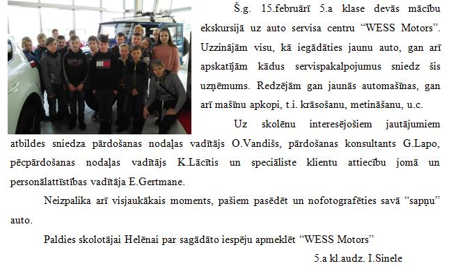 5.a klase dodas ekskursijā uz “”WESS Motors”