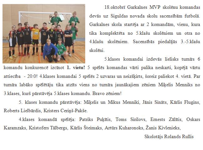 Garkalnes skolai teicami panākumi futbola sacensībās Siguldā