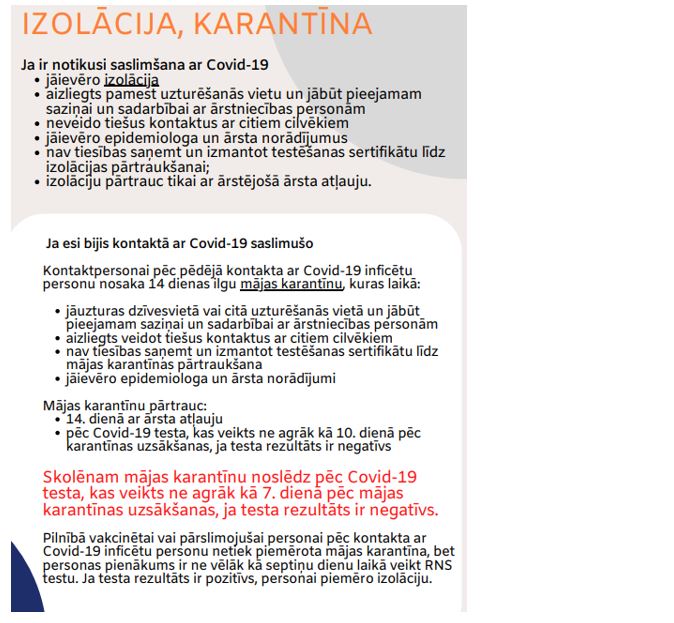 Rīcība Covid-19 saslimšanas vai kontaktēšanās gadījumā