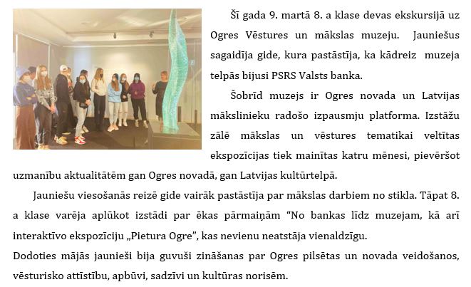 8.klase ekskursijā uz Ogres Vēstures un mākslas muzeju
