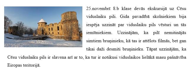 8.b klases ekskursija uz Cēsu pili