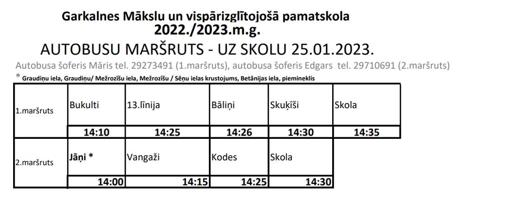 Autobusu saraksts Mākslu skolai 25.01.