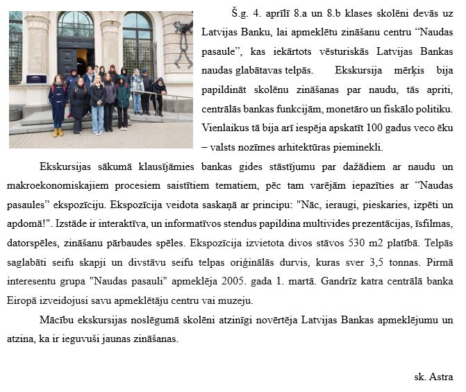 Ekskursija “Naudas pasaulē”
