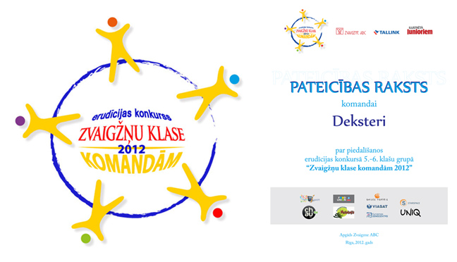 Apgāds Zvaigzne ABC jau trešo reizi izsludināja erudīcijas konkursu komandām „Zvaigžņu klase 2012” 5.-9. klasēm. Tā kā balvas bija vērtīgas - „Tallink” jūras ceļojums Rīga-Stokholma-Rīga, žurnāla „Ilustrētā Junioriem” gada abonements un dāvanu karte 100 Ls vērtībā veikalā Zvaigzne ABC, dalību šajā konkursā pieteica divas mūsu skolas komandas – „Deksteri” (6.a klase) un „Pēcstundu karaļi” (9.a klase).