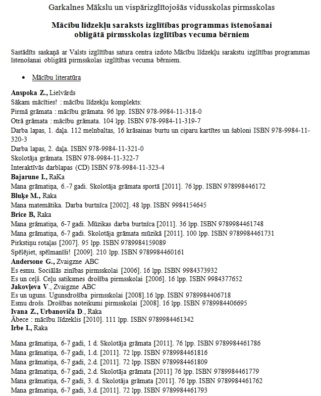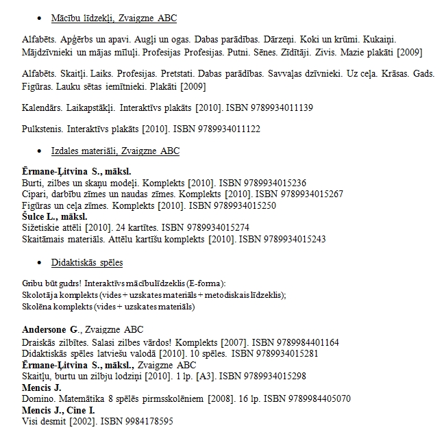 Mācību līdzekļu saraksts